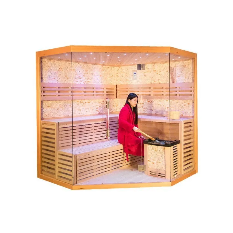 تدمج ساونا Hemlock المزودة بنظام تحكم ذكي من الزجاج ثلاثي الجوانب مواد متميزة وتصميمًا شفافًا وتحكمًا ذكيًا وضمانات السلامة، مع حرفية دقيقة بدءًا من المكونات الأساسية وحتى الملحقات التفصيلية. سواء تم استخدامها كمساحة استرخاء خاصة في المنزل لتجارب الساونا الاحترافية وسط جداول مزدحمة، أو في الأماكن التجارية مثل الفنادق ونوادي السبا ومراكز اللياقة البدنية لتقديم خدمات عالية الجودة، فإنها تلبي تمامًا الاحتياجات المتنوعة - مما يخلق تجربة ساونا مريحة وصحية واحترافية لك.
