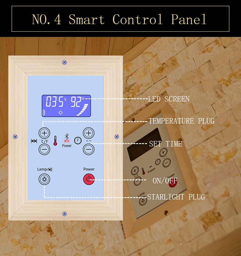 - مستشعر درجة الحرارة: مدمج في الجدار الجانبي للساونا لالتقاط التغيرات في درجات الحرارة بدقة في المناطق المختلفة، مما يضمن تسخينًا موحدًا.