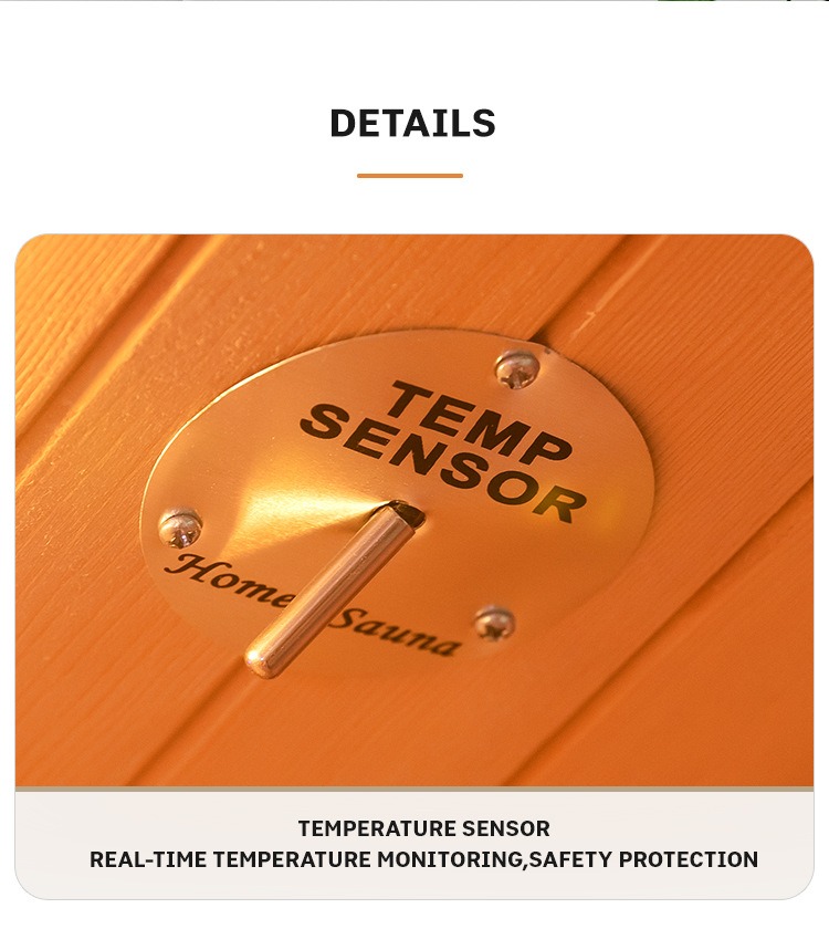 • نظام التحكم في درجة الحرارة في الوقت الحقيقي: يقوم مستشعر درجة الحرارة المدمج بمراقبة درجة الحرارة الداخلية بدقة لضمان سلامة الساونا.