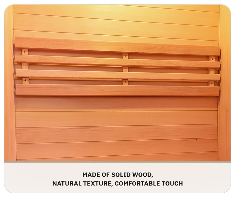 تم اختيار نوعين من الأخشاب الكندية المتميزة، هما Hemlock وRed Cedar. الخشب صلب ومتين، ذو ملمس طبيعي واضح ولون أنيق موحد. الخصائص الطبيعية لكل قطعة من الخشب تمنح الساونا نسيجًا فريدًا، وتحقن الجينات الجمالية الطبيعية والراقية في مساحة العافية بمنزلك. ساونا داخلية بالأشعة تحت الحمراء للمنزل.