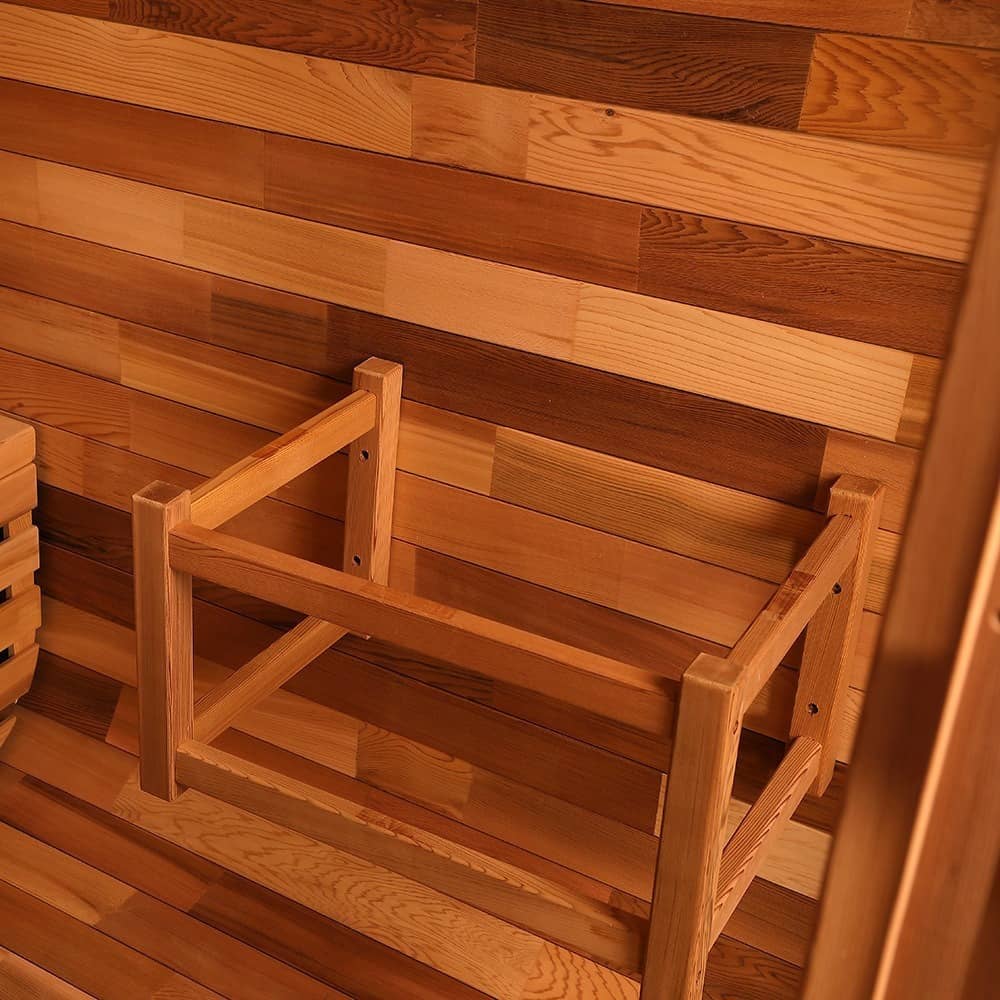 - المادة الرئيسية: يتم استخدام الخشب الصلب عالي الجودة المقاوم للحرارة في جميع أنحاء (الجدران والمقاعد والإطار كلها من الخشب الصلب)، وتمت معالجته باحترافية لمقاومة الرطوبة والحرارة للتكيف مع بيئة الساونا ذات درجة الحرارة العالية والرطوبة العالية.