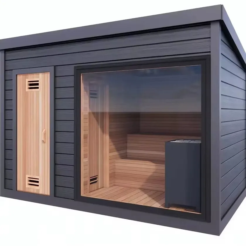 مجموعة الساونا والجاكوزي المتكاملة في الهواء الطلق - الفناء/الفيلا المصنوعة من الزجاج المقسى المصنوع من الخشب الصلب عبارة عن مرفق ترفيهي متكامل مصمم حصريًا للمساحات الخارجية مثل الساحات والفيلات. فهو يجمع بين غرفة الساونا والجاكوزي داخل هيكل إطار خشبي متين، مقترنًا بمقصورات زجاجية شفافة. مع احتفاظه بنسيجه الطبيعي، فإنه يمتزج بسلاسة مع البيئات الخارجية (المساحات الخضراء والأسطح المرصوفة)، مما يخلق مساحة استرخاء خاصة للعائلات. ستعرض السلسلة اللاحقة من الصور تصميمه المتكامل وتفاصيل المواد وتأثيرات التثبيت وسيناريوهات الاستخدام من زوايا متعددة، مما يعرض مزايا المنتج بشكل بديهي.