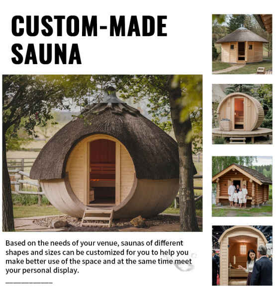 كسر القيود المفروضة على الأشكال الثابتة للساونا التقليدية، وغرفة تبخير خارجية بباب زجاجي خارجييدعم التصميم المخصص كامل الأبعاد لخصائص السيناريو الخارجي: